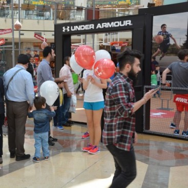 Dünyaca ünlü basketbolcu Stephen Curry’nin de sponsoru olan Under Armour markasının İstinye Park mağazasının açılış etkinlikleri kapsamında AVM meydanında kurmuş olduğumuz Basketbol sahamızda, çocuklara basketbolun temel eğitimlerini verdik, yarışmalar yaptık ve hediyeler dağıttık. 2 gün boyunca Under Armour ile hem öğrendik, hem eğlendik, hem de hediyeler kazandık.